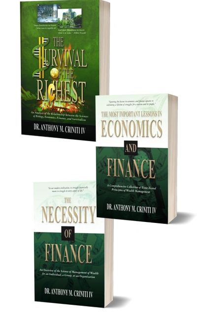 In his provocative book, The Survival of the Richest: An Analysis of the Relationship between the Sciences of Biology, Economics, Finance, and Survivalism, Dr. Anthony M. Criniti IV crosses the borders of his true specialty as a financialist, and enters the realms of biology and beyond as a matter of necessity.